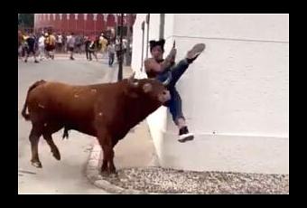 Este último había avanzado con furia hacía los ciudadanos pero cuando quiso dar vuelta la esquina se tropezó. Cuando se levantó, de forma inmediata atacó a la joven que le había dado la espalda ya que nunca había observado el toro estaba detrás de ella.