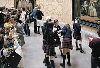 ¿Que se obtendría si alguien nos fotografiara en el momento en el cual estamos mirando una foto en la cual otras personas están mirando una obra de arte que a su vez mira las personas que la están mirando?… esto es lo que he llegado a pensar cuando estaba inmerso en las salas del Guggenheim de Bilbao (hasta el 19 de enero) dedicadas a la fotografía de Thomas Struth. ¿Y si volviéramos a hacer lo mismo hasta el infinito? Obtendríamos un abismo de miradas que miran como cuando de pequeño, con mis primas, nos poníamos en el medio de dos espejos que se reflejaban en el cuarto de dormir de mi abuela, restituyéndonos un abismo recursivo de nuestras personas.