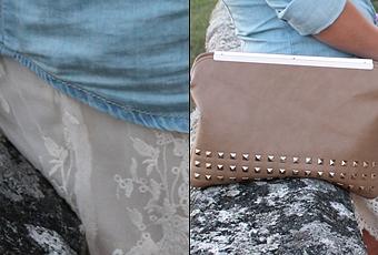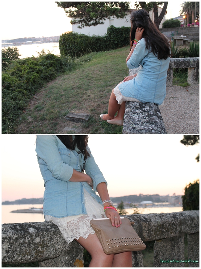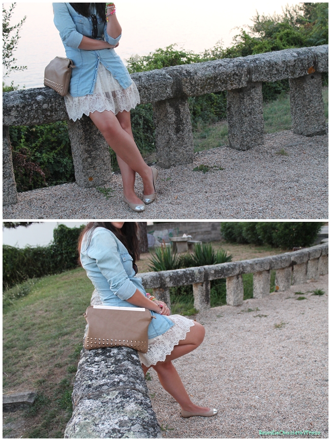 For that occasion I combined garments already know her but differently, giving a different look to each of them. The cream lace skirt with a denim shirt as dancers and bag accessories in nude.