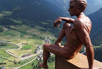 Al final de la pasarela, colgando de una viga que sobresale de la misma tenemos al "Pensador" del artista Miguel Ángel González, sin duda alguna, uno de los iconos de Andorra.