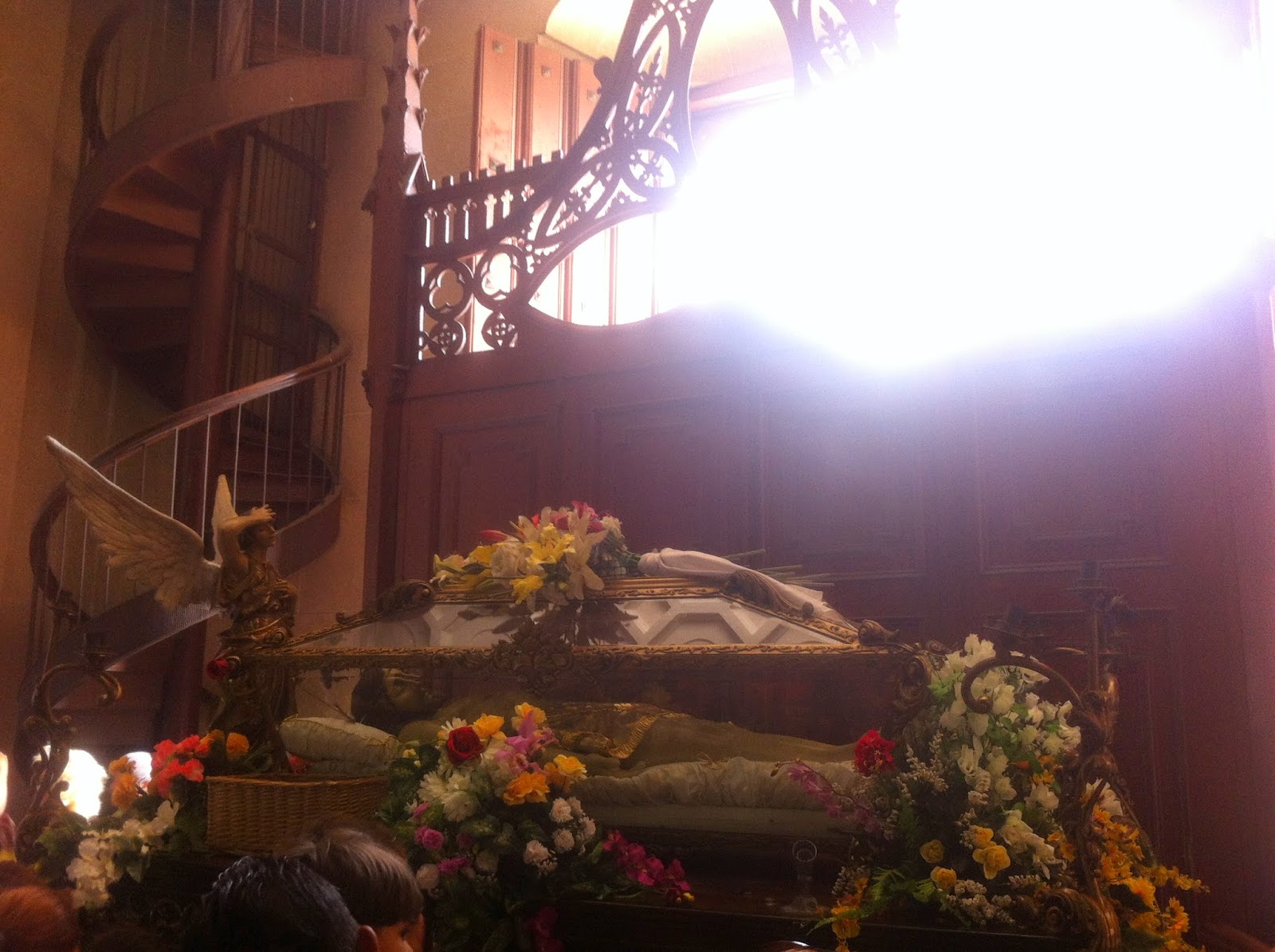 La calle que une la Urdaneta con la próxima iglesia estaba cerrada para el tránsito de los feligreses, la verdad es que parecía la escena de los mercaderes echados por Jesús. La mayoría de los puestos vendían inciensos, estampas, imágenes y todo aquello que te invita a multiplicar tu fe o poner tu fe en ello. Un poco más y bebidas refrescantes y helados a precios que no van con aquello de precios justos.