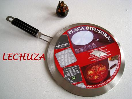 En primer lugar, aunque ya lo hice a través de mi página de facebook, quería que conocieséis la placa difusora. Sabéis cuanto me gusta cocinar en cazuela de barro, pero hoy en día, en casi todas las cocinas tenemos placa eléctrica, bien sea vitrocerámica o de inducción.