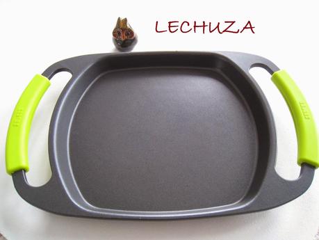 Otro de los artículos que adquirí recientemente, es este grill-plancha de la marca Ibili. Está fabricado en aluminio indeformable y tiene las empuñaduras de silicona para evitar quemaduras. El fondo es de acero apto para inducción.