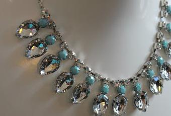 Preciosidad de collar de cristales transparentes y azules.