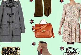1. Abrigo gris de paño. De Zara. 2. Pulsera en toque bronce con perlas. De Radical Look. 3. Guantes de piel en marrón. De Asos. 4. Bolso marrón de asa o colgar. De ModCloth. 5. Botines de tacón en tono tierra. De Dansi. 6. Vestido de manga larga de estampado floral con lazo. De Riverside. 7. Coletero con lazo. De Oysho.