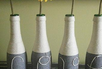 La semana pasada, durante mis vacaciones, apareció en el blog "Singulares", del que, como sabéis, soy uno de los redactores, un post escrito por mí en el que hablaba de los preciosos jarrones (y otros objetos) que Wanda Obreke (del establecimiento madrileño "Lío Vintage") realiza a partir de botellas recicladas, con cordel de embalar y telas de diferentes estampados