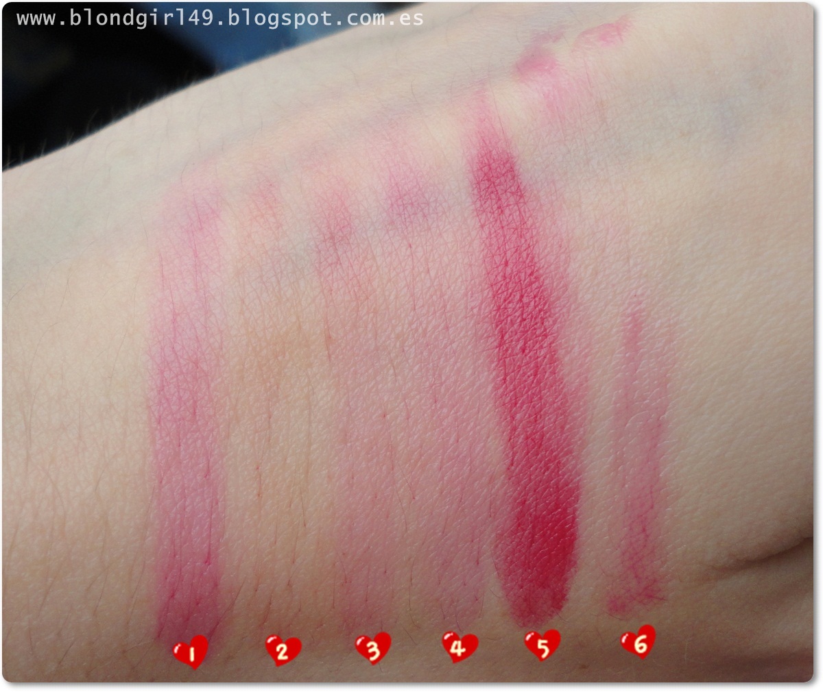 En general tengo que decir que los que os enseñaré son todos bastante pigmentados así que no son aptos para las que busquéis un tono discreto, estos son bastante potentes pero quedan muy bonitos. A veces sólo es cuestión de acostumbrarse a verse con colores más llamativos, yo misma al principio me veía rara (igual que con los rojos pasión) pero a base de usarlos ya estoy acostumbrada a verme con ellos^^. No todos tienen un mismo color (sería tontería) pero todos en general van entre el fucsia tirando más a coral o sino a rosado.
