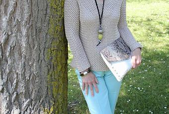 Esta vez lo he combinado con un jersey beig y los complementos jugando con el beig y el blanco en diferentes estampados.