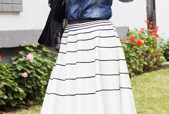 Hoy les muestro una de mis combinaciones favoritas desde que me volví emprendedora y es esto de combinar una camisa de jean (denim) con prendas más femeninas como faldas o pantalones de vestir. Creo que se logra un equilibrio divertido sin caer en lo muy casual.