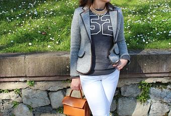 Me decidí a ponermelos y los quise combinar en un look casual pero con su punto arreglado al poner la blazier encima. El calzado que elegí fueron unas cómodas bailarinas con piedrecillas y para romper un poco un bolso de color cuero.
