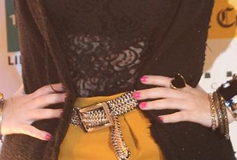 Top negro de encaje: Moda & Cia Falda mostaza: Moda & Cia Lo accesorizé con... Blazer con tachas: Zara Correa dorada de trenzas metálicas: MNG Zapatos de Gamuza y punta metálica: Schutz Brazaletes: Neiman Marcus, Express, Claudia Jimenez, Forever21 Anillo corazón: Forever21