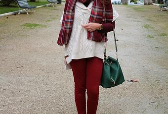 Entramos en la semana de Navidad y hoy os pongo un look casual antes de los looks más festivos. Se trata de un total look en granate pantalones pitillo y jersey con un poncho de punto encima y una preciosa bufanda a juego.