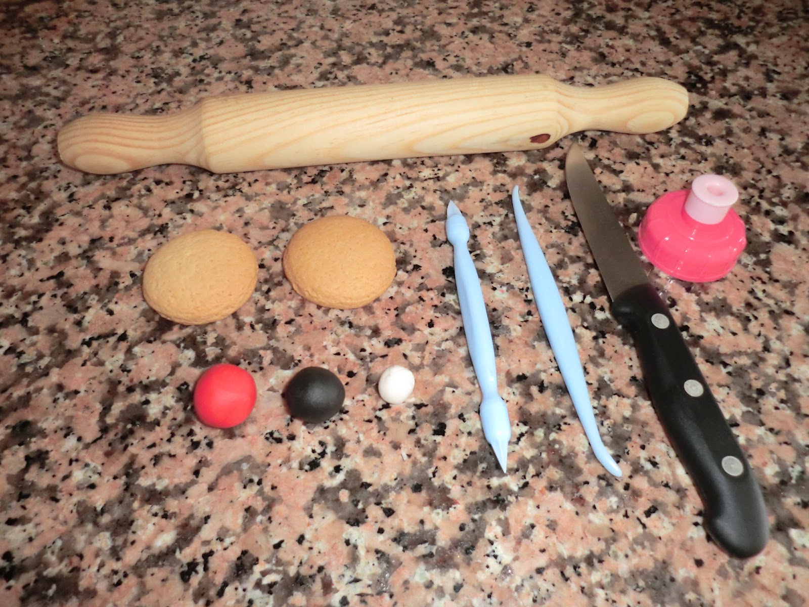 - Galletas redondas- Fondant negro, rojo y blanco.- Rotulador comestible negro.- Nocilla o pegamento comestible( yo suelo usar nocilla).PREPARACIÓN: La receta de las galletas la encontraréis en otra entrada anterior en este blog, pincha aquí.