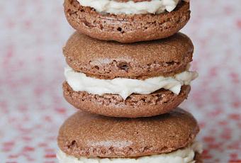 Una vez las bases estén frías, emparéjalas por que no todas serán iguales ;) y añade el relleno entre ellas con las ayuda de una manga pastelera. Procura no pegarte mucho al borde por que al taparlos el relleno cederá y podría salir bastante por los bordes.