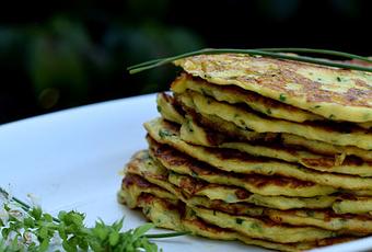 1 calabacín1 mozzarella sin lactosa2 cucharadas de harina de maíz2 cucharadas de harina de trigo sarraceno2 huevos1 cucharada de cebollino picado1 cucharada de albahacaSal y pimientaElaboración: