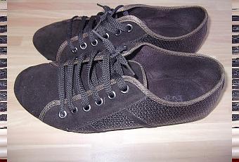 Estos son unos zapatos deportivos marrones de tela,con cordones y a los lados llevan lentejuelas.Son muy cómodos,elegantes y sientan muy bien.