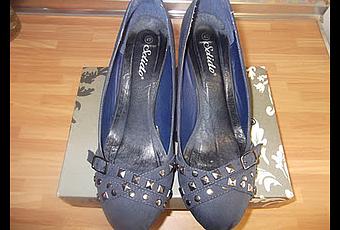 Son el modelo Nº 9650 de la firma Solido.Estos zapatos son de color azul marino con tachuelas y anillas y se atan a los tobillos.Están fabricados en piel natural y piel sintética y el piso esta hecho de goma para una mayor comodidad.El tacón es de imitación madera de 6,5 cm.