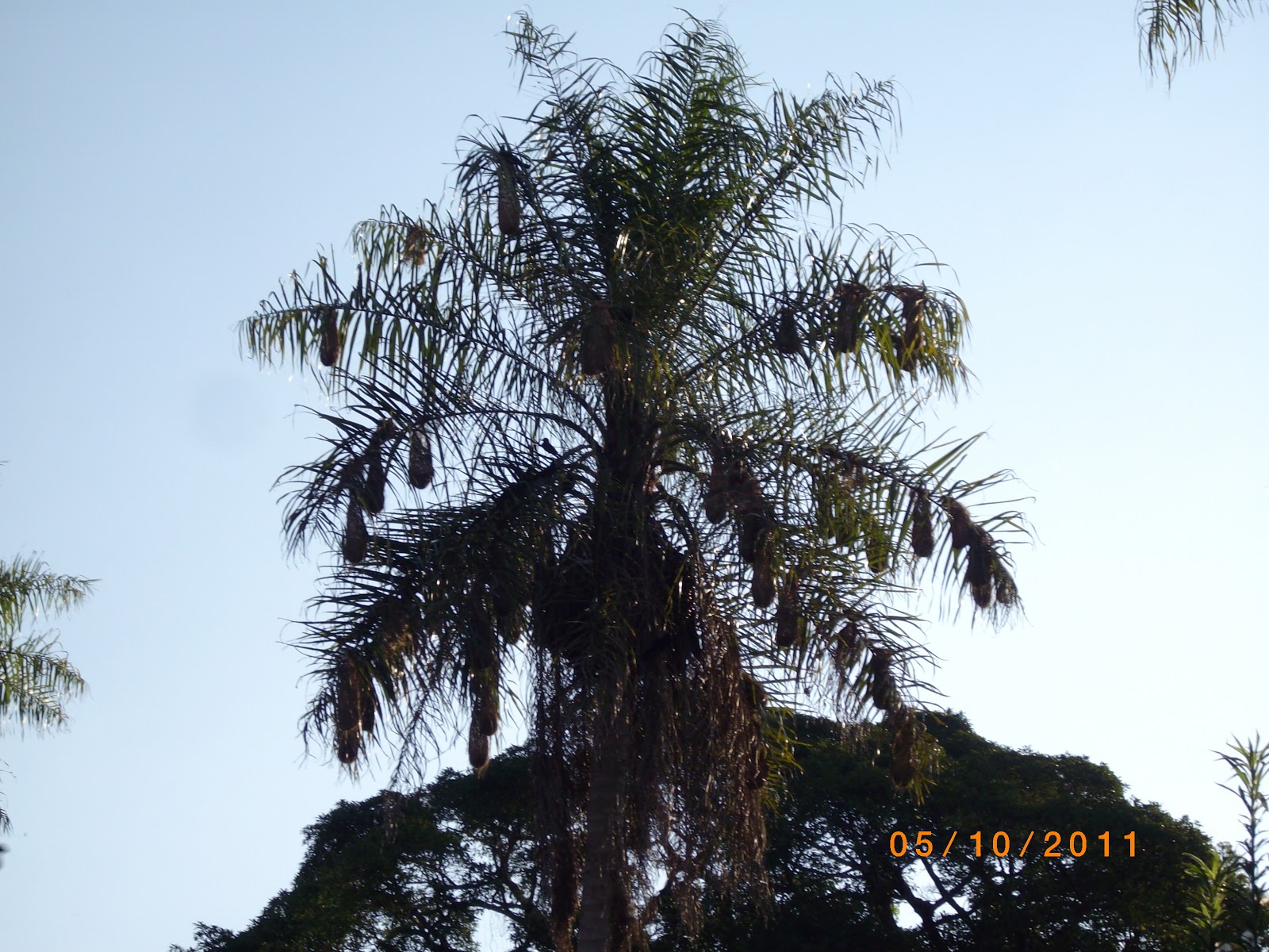En el predio de la Reducción, una palmera repleta de nidos colgantes de un pájaro que habita en las proximidades de ríos y arroyos