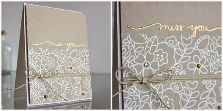 ¡Hola! ¡Hoy quiero enseñaros otra tarjeta super fácil de hacer! Esta vez he usado mucho embossing en caliente y una combinación de color kraft, blanco y oro.