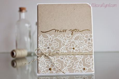 Hi there! Today I want to share with you another easy peasy card! This time I've used a lot of heat embossing and a combination of kraft, white and gold.