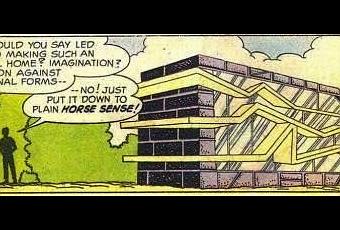 Míster Ed es el título de una serie de televisión popular en los Estados Unidos durante los años sesenta, el protagonista, el tal Ed, es un caballo que habla -quizás familia de la mula Francis- y vive en una cuadra de su dueño, Wilbur Post, un arquitecto que tiene su estudio al lado de esa cuadra con una gran compuerta abierta hacia ella, por lo que puede mantener conversaciones con Ed. No sé si esta serie se llegó a emitir en España y si así fue, no recuerdo haber visto algún episodio. Traigo ahora a este blog a Mr. Ed, porque he descubierto un cómic basado en sus aventuras, publicado en marzo-mayo de 1962, que se encuentra aquí, en un estupendo portal de cómics gratuitos llamado Comic Book Plus. Voy a contarles el argumento de una de sus aventuras, la titulada "Amateur Architect", en ella Wilbur está haciendo el proyecto de un chalé para un airado cliente, Mr. Grump "Gruñón", y no sabe si diseñarlo con un estilo colonial o moderno, al final decide hacer una mezcla horrorosa que no le gusta a Mr. Ed, pero sí al cliente; al comenzar la obra el caballo piensa que se ha de modificar el edificio, por lo que llama por teléfono al capataz -no se explica cómo gira el disco del aparato telefónico con su pezuña-, le dicta una serie de órdenes y cambia completamente la forma del chalé, cuando Wilbur llega a la obra se lleva una sorpresa, porque le parece horrible, pero a su cliente le encanta y poco después llegan dos miembros del "Architects' Committee" que quieren fotografiar el edificio por ser "el diseño más original del año", la siguiente viñeta es la que reproduzco al comienzo de esta entrada y en ella puede verse la casa entera. Este cómic no es la reproducción de un episodio que se emitiese en televisión, al menos con ese título, por lo que no tiene mucho que ver con el cine y la imagen en movimiento, pero al ver el edificio, "horroroso" para el arquitecto, "original" para el propietario y la crítica, no he podido dejar de hablar sobre él, seguro que los lectores lo relacionarán con algún otro que hayan visto y se podría escribir sobre este cómic, pero en estos días no tengo tiempo, así que se lo dejo a otros.
