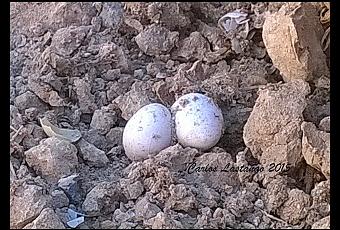 Estos huevos, son un indicio inconfundible de la presencia de las salamanquesas (Tarentola mauritanica). En efecto, la puesta de la salamanquesa es de dos huevos que aparecen pegados uno a otro y que son depositados en grietas y huecos de los muros. En este caso, quizá la escasez de humedad hizo que estos huevos no llegasen a eclosionar. No es la primera vez que en las paredes de adobe encuentro las características parejas de huevos, y en algún caso, hasta he podido sacar la pequeña salamanquesa seca ya del interior del huevecillo.
