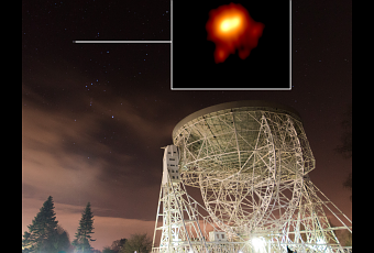 La nueva imagen, tomada por el conjunto de radiotelescopios e-MERLIN operado desde el Observatorio de Jodrell Bank, en Cheshire, también muestra regiones de gas sorprendentemente calientes en la atmósfera exterior de la estrella y un arco enfriador de gas que pesa casi tanto como la Tierra.
