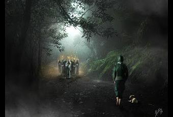 Si la muerte ha sido repentina hay que resolver cuanto de inacabado o mal hecho haya dejado el difunto. Ilustración Estantigua, Procesión de Muertos o Santa Compaña
