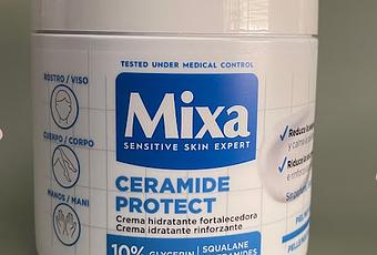 Mixa Crema fortalecedora Ceramide Protect esta indicada para piel muy secas para rostro, cuerpo y manos formulada con un 10% de Glicerina, Escualano y Ceramidas.10% de Glicerina: ayuda a suavizar la textura áspera, irritada y a reducir la apariencia de sequedad fortaleciendo la barrera natural de la piel para una hidratación duradera. Escualeno: es un lípido que se encuentra de manera natural en nuestra piel, el cual hidrata profundamente, la suaviza y la protege contra la pérdida de humedad. Además, refuerza la barrera cutánea, actuando como antioxidante y ayudando a calmar el picazón.Ceramidas: ayudan a fortalecer la barrera cutánea, previniendo la pérdida de humedad y protegiendo contra factores externos como la contaminación y el frío. Además, mejoran la elasticidad, reducen la irritación y calman la piel sensible.Butyrospermum Parkii butter/shea butter: La manteca de karité es un emoliente y acondicionador de la piel. Es rica en ácidos grasos y vitaminas, lo que la hace ideal para suavizar, nutrir y proteger la piel seca.Tocopherol/Vitamina E: un antioxidante que protege de los daños causados por los radicales libres y el estrés ambiental.