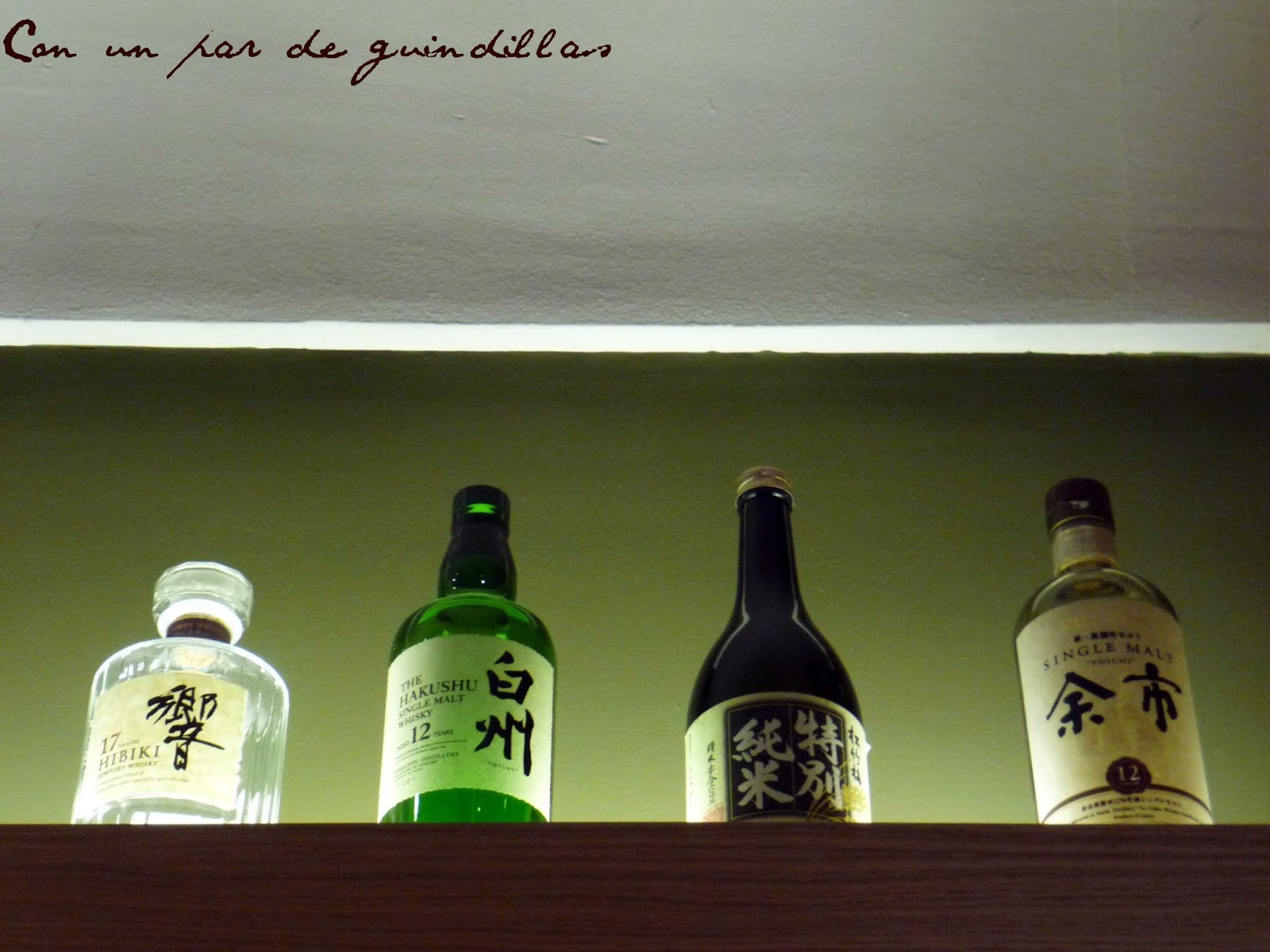 Botellas de sake decoran la sala