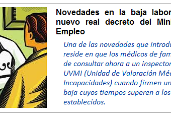 Otra de las novedades que introduce la ley reside en que los médicos de familia han de consultar ahora a un inspector de la UVMI (Unidad de Valoración Médica de Incapacidades) cuando firmen un parte de baja cuyos tiempos superen a los establecidos.