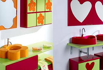 Hace poco les enseñamos las puertas de la diseñadora Agatha Ruiz de la Prada. Hoy les traemos otra gran propuesta de la diseñadora, que sigue su misma línea característica, y que se refiere al mobiliario de baño.Se trata de muebles, espejos, y lavamanos con mucho color para dar un toque alegre y moderno al baño. El sello esta enfocado en las formas que habitualmente utiliza Agatha, que son los corazones, las estrellas y las flores.