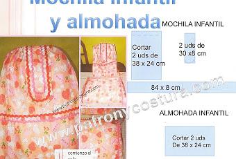Materiales1 metro de tela; 1,25 cm adorno, 10 cm cinta, 2,80 cm de cuerda, hilo, 2 cm de velcro y relleno para la almohada (algodón sintético o guata doblada).