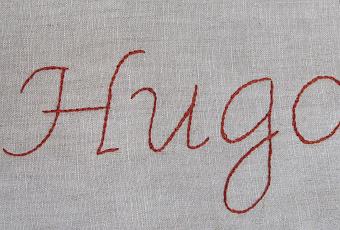 Primero disfruto bordando el nombre, como siempre a punto de tallo.
