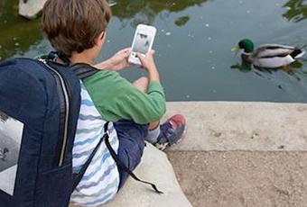 Cambiar la imagen es muy sencillo, sólo necesitas un smartphone, porque la mochila tiene conexión Bluetooth con una aplicación móvil. Así que podemos tomar fotos y cargarlas de inmediato, tal como hace el niño en la foto.