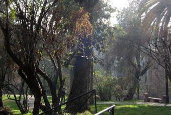 En el centro del cerro hay un mirador al que se puede subir y que tiene unas vistas espectaculares de la ciudad, sobre todo si uno tiene suerte y está despejado, y no hay mucha contaminación. No fue nuestro caso, y apenas se podía discernir la cordillera de los Andes entre el smog que flotaba sobre la ciudad. Aun así merece la pena subir para hacerse una idea de la inmensidad y la mezcolanza de construcciones que es Santiago. Hasta Darwin estuvo allí en lo alto maravilllandose con las vistas. También se puede visitar el Castillo Hidalgo, el jardín de Darwin, jardín japonés (aunque estaba en “mantención”, por usar la palabra chilena, cuando lo visitamos) la plaza de Caupolican, etc.