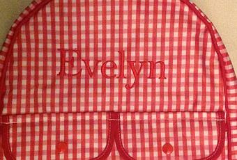 Hola chicas, buenos días. Hoy os traigo la cuarta mochilita, la tercera de vichy rojo, y en esta ocasión es para mi pequeña Evelyn. Tejido plastificado, acolchadita, con dos bolsillitos delanteros y por supuesto, con su nombre bordado. Ya solo me queda hacerle una al pequeño Sergio, creo que se lo haré en otro color. Buen Jueves, falso viernes, porque mañana es festivo.