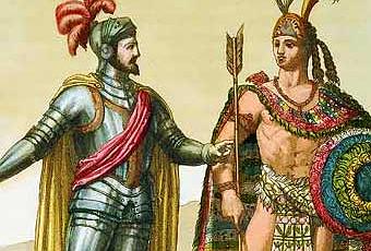 Hernán Cortes y Moctezuma II