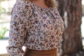 La blusa de flores, es de Stradivarius de la temporada de Otoño/Invierno del año pasado, tiene escote de barco y estampado de flores pequeño, este tipo de estampado para las personas de talla pequeña son los más adecuados ya que los estampados grandes ensanchan.