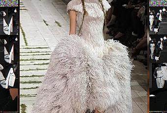 Las siluetas se exageran, pero se rompe la crudeza y se toman materias primas más volátiles y ligeras. Sus plumajes y estampados de mariposas son buena muestra de ello.