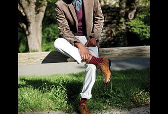 Empezamos con el primero, de Heritage. Un mezcla de estilo entre lo clásico y toques modernos, gracias a la combinación entre chaqueta de pana de corte clásico y la gorra, con elementos más actuales como los chinos de color hueso claro, calcetines a rayas y la camisa vaquera tan de moda esta temporada.