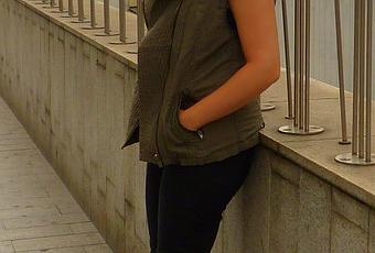 Así que para el look aproveché este chaleco verde kaki (que me compré en rebajas pensando que sería perfecto para otoño, el verde kaki y el camuflaje serán moda total). Con pantalón negro, camiseta negra y unas sandalias planas negras. (Como ya sabéis la peque ya anda y me toca corretear con ella).