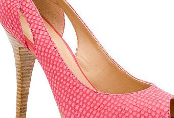Peep toe color coral con plataforma y taco de madera, de Vía Uno