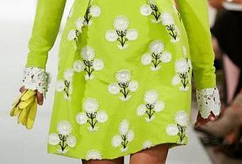 Oscar de la Renta por ejemplo presenta en esta primavera-verano 2014 sus creaciones lo que parece una mezcla de varias colecciones en una. Minivestidos floreados, colores llamativos, tejidos, unos más largos, y un total white look; conjuntos con estampado "pico de gallo" y gowns strapless con bordados metálicos. El diseñador Dominicano prefiele los modelos frescos, los looks que muestren siluetas más relajadas y elegancia en la ropa informal, para coctéles fiestas de noche, bodas, graduaciones y otro eventos porque tenemos para toda ocasión. Además rompe con la sobriedad jugando con transparencias y calados.