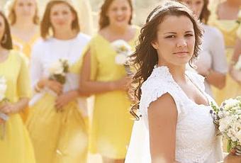 Buscando fotos de yellow dresses he encontrado un montón de imágenes de damas de honor vestidas en este tono y creo que queda fenomenal. Es un color que suele sentar bien a mucha gente y el contraste con la novia me gusta, ¿estáis de acuerdo?