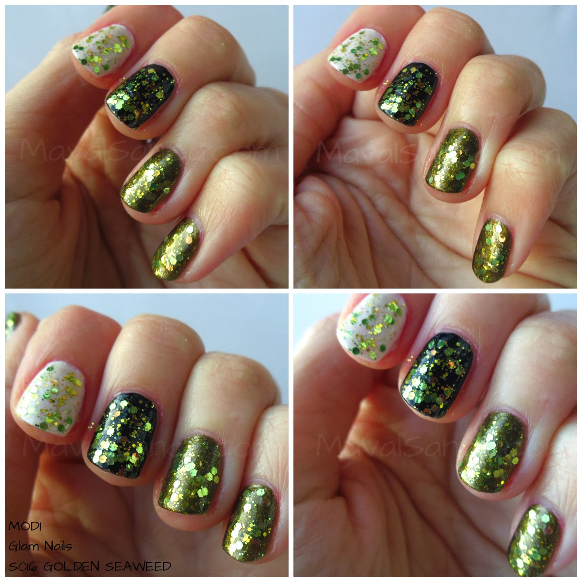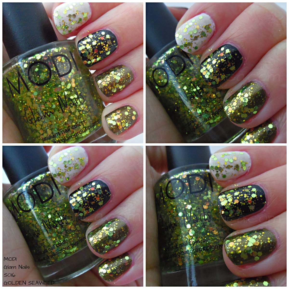 S016 Golden Seaweed is one of the MODI Glam Nails, an hypnotic glitter nail polish.