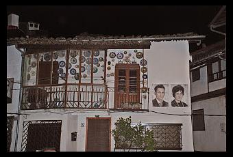 NOCHE DE LA MOZA DE LAS ÁNIMAS.Es una delicia perderse por el torbellino laberíntico de Mogarraz; emerger ante enigmáticas casas en cuyas fachadas aparecen retratos de personas de mirada congelada. Estos rostros pintados muestran a las gentes que vivieron en estas moradas solariegas allá por los años 40, cuando el alcalde de entonces encomendara a un pintor local el trabajo de inmortalizarlos en base a unas fotos que debían aportar todos los vecinos mayores de edad para expedirles el documento nacional de identidad.