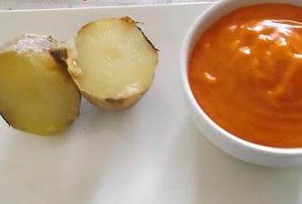 - Se asa el pimiento rojo si no está asado y si se quiere poner natural, tambien se puede hacer con pimientos asados envasados.