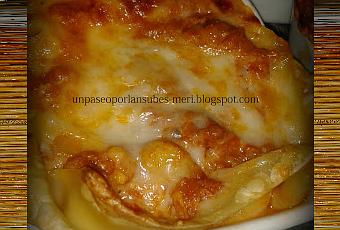Para ello picamos la cebolla, el ajo y el calabacín y lo pochamos en una sartén con un chorrito de aceite. Añadimos la carne picada y vamos removiendo hasta que se haga bien. Ponemos la salsa de tomate natural y reservamos. Precalentamos el horno 180º. En un cazo ponemos agua y pasamos las láminas de la lasaña. Sacamos, escurrimos y cubrimos los moldes.