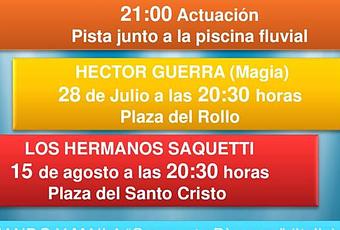 El 28 de julio será turno de nuevo para la magia con la actuación de Héctor Guerra a las 20:30h en la Plaza del Rollo. Por su parte los Hermanos Saquetto actuarán en las fiestas de Molinaseca, concretamente el 15 de agosto a las 20:30h en la Plaza de Santo Cristo, por último el 31 de agosto Nando y Maila Sconcerto d’amore desde Italia a las 20:00h al lado de la playa fluvial
